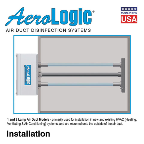 Utilize the AeroLogic® Two Lamp Air Duct Disinfection System in your home, commercial, or industrial building HVAC system, and reduce and/or eliminate the growth of bacteria, mold and spores. AeroLogic® Air Duct Disinfection Systems help to control the spread of airborne cold and flu virus, as well as other airborne transmitted diseases.