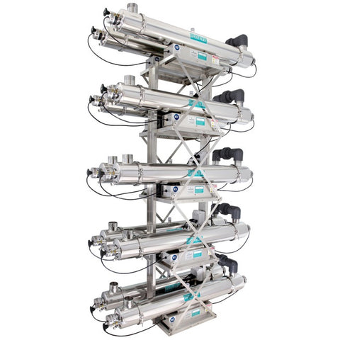 Multi-Chamber SANITRON® models are created through the combination of multiple S2400C Single-Chamber SANITRON® models, for the purpose of increasing flow rate and UV treatment capabilities. Models S2400C through S25,000C are available with alternate inlet/outlet fittings. SANITRON® Models S37C, S50C, and S2400C are NSF/ANSI 61 & 372 Certified. Our NSF/ANSI Model S2400C is used to build models S5,000C and up.